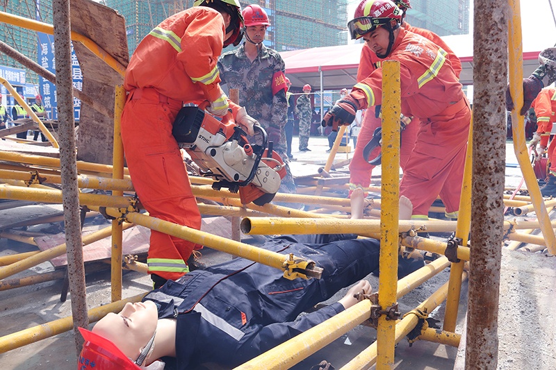 本次演練目的是檢驗建筑施工單位在建筑施工過程中突發(fā)事故的綜合指揮能力、快速反應(yīng)能力、應(yīng)急處置和協(xié)調(diào)作戰(zhàn)能力,提高施工企業(yè)在安全生產(chǎn)中的應(yīng)急救援水平,全面促進救援隊伍的標準化建設(shè)。