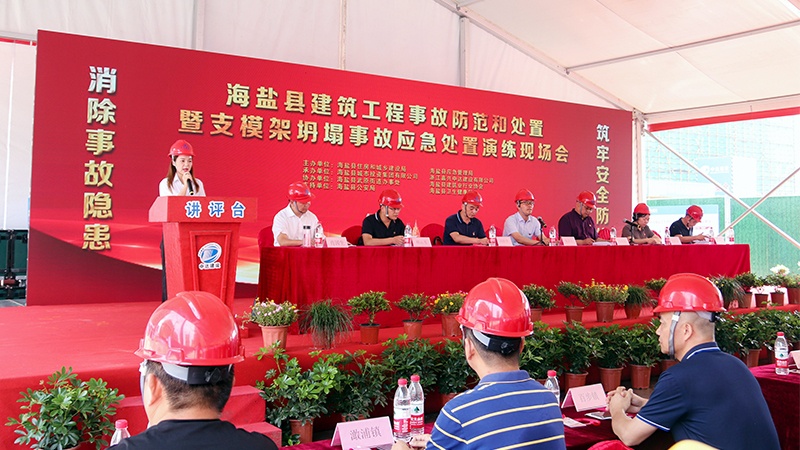 本次現(xiàn)場會,由縣住建局、縣應(yīng)急管理局主辦;海鹽縣城市投資集團有限公司、浙江嘉興中達建設(shè)有限公司承辦;浙江嘉興中達建設(shè)有限公司嘉和景苑項目經(jīng)理部具體實施演練??h相關(guān)領(lǐng)導、全縣各建筑施工、監(jiān)理企業(yè)的安全生產(chǎn)負責人,及在建工程項目經(jīng)理、總監(jiān)代表等,到場共計200余人。