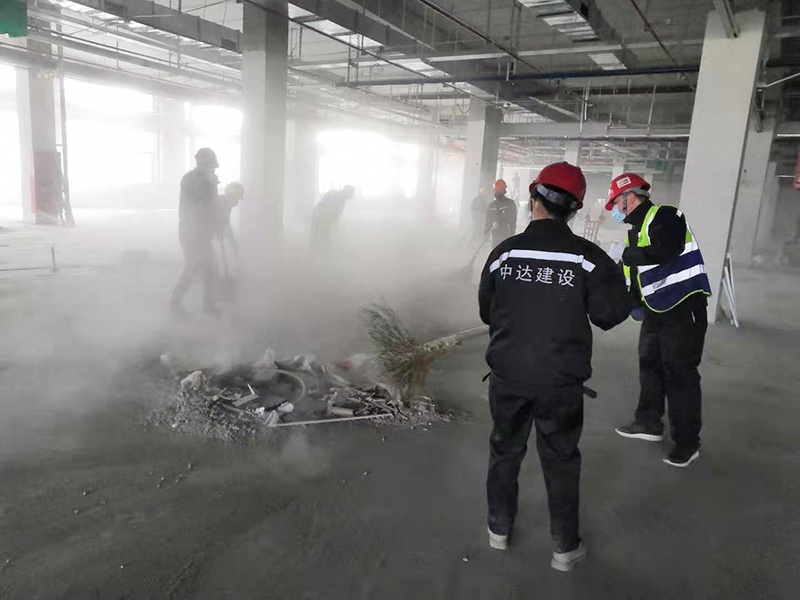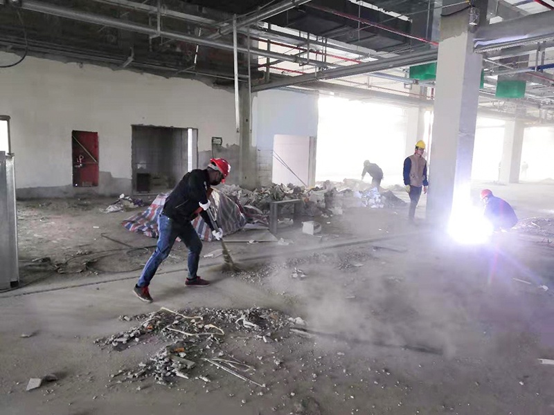 17日上午,員工們到達(dá)項目現(xiàn)場后,面對三個樓面三萬多平方米的超大空間,大家并未被眼前巨大的勞動量嚇倒。相反,大家紛紛戴起口罩,拿起勞動工具,自發(fā)地按照分配樓層開始高強(qiáng)度的工作。