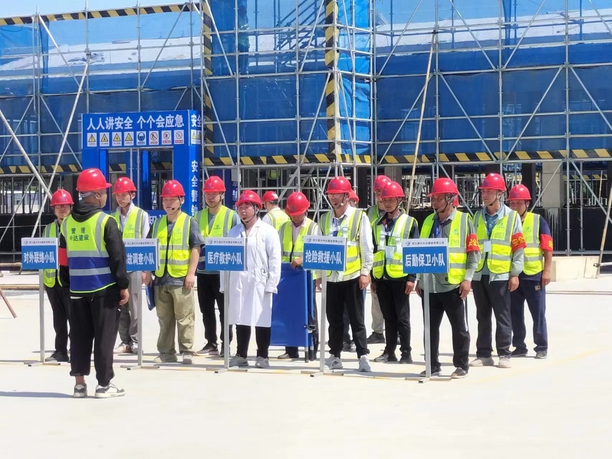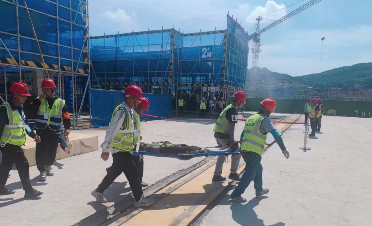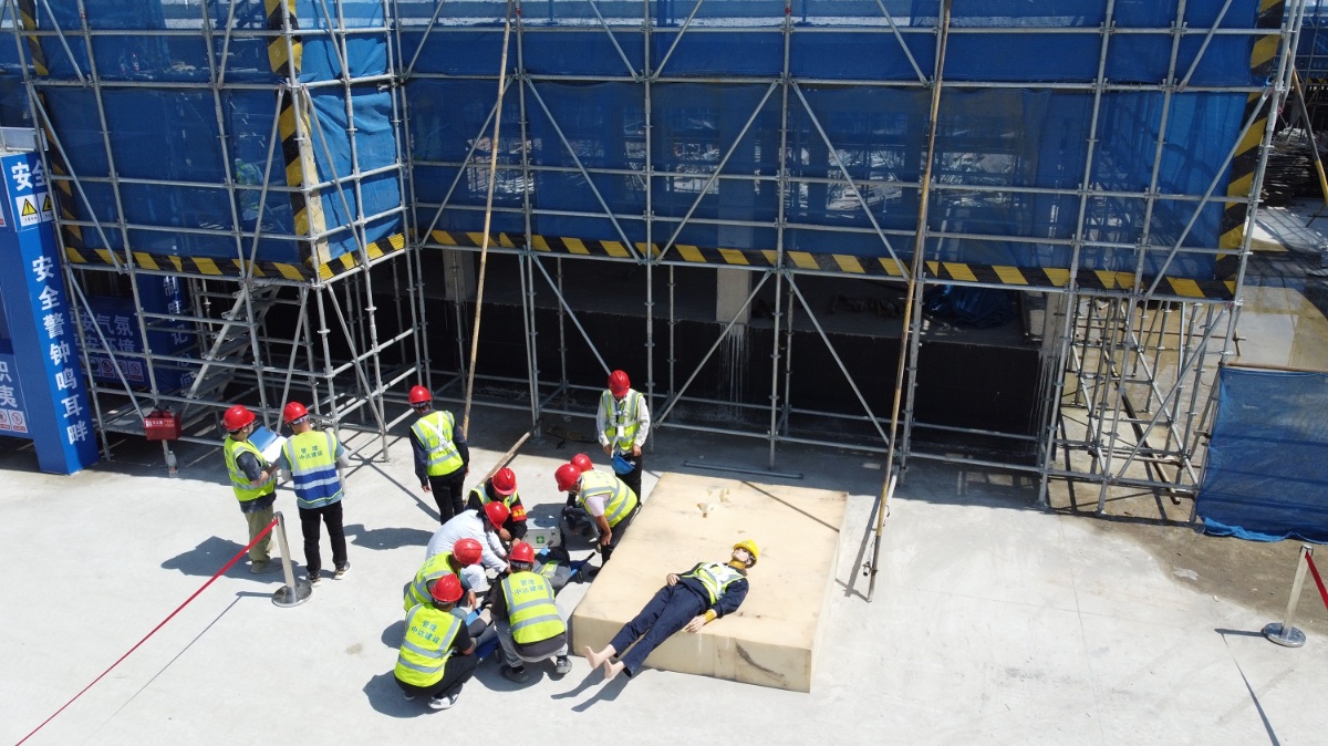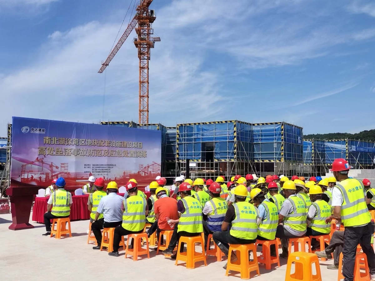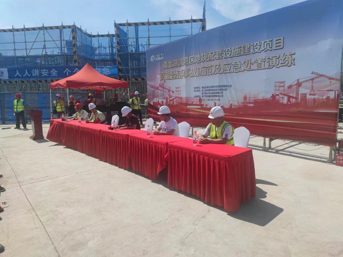 為貫徹落實(shí)上級主管部門關(guān)于做好安全生產(chǎn)的工作部署,積極響應(yīng)“人人講安全,個個會應(yīng)急”的活動主題,提升全員應(yīng)對突發(fā)事件和風(fēng)險(xiǎn)防控能力。6月28日下午,中達(dá)建設(shè)承建的南北湖徐灣區(qū)地塊配套設(shè)施建設(shè)項(xiàng)目組織開展“高處墜落事故防范及處置”應(yīng)急演練。參加演練觀摩的有海鹽縣南北湖景區(qū)投資管理有限公司、浙江恒躍建設(shè)管理有限公司、浙江安地建筑規(guī)劃設(shè)計(jì)有限公司現(xiàn)場代表以及浙江嘉興中達(dá)建設(shè)有限公司各項(xiàng)目負(fù)責(zé)人、安全管理部門等100余人。