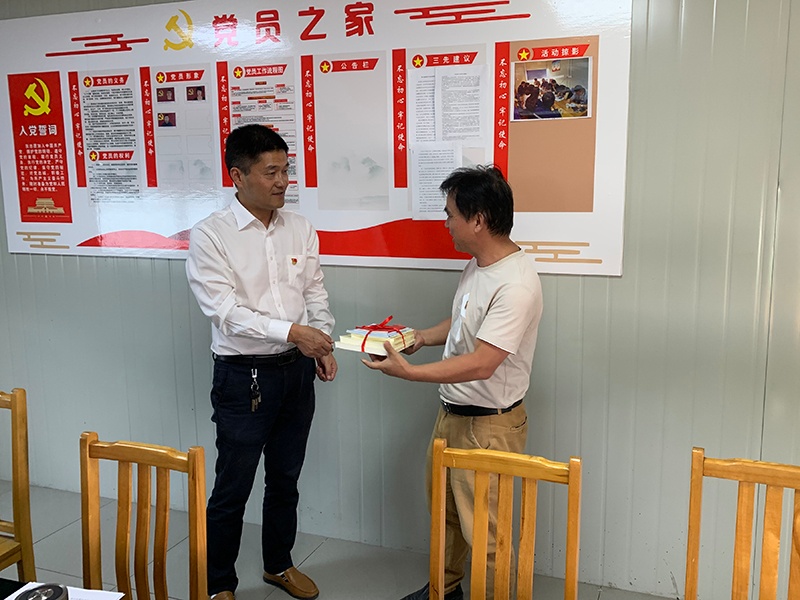支部書(shū)記向工地黨支部贈(zèng)送學(xué)習(xí)書(shū)籍